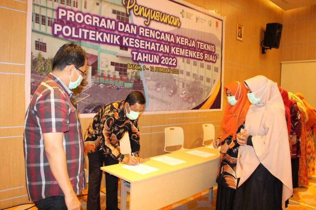 Kegiatan diakhiri dengan penadatangan pakta integritas oleh semua jajaran manajemen dan pengelola Poltekkes Kemenkes Riau.