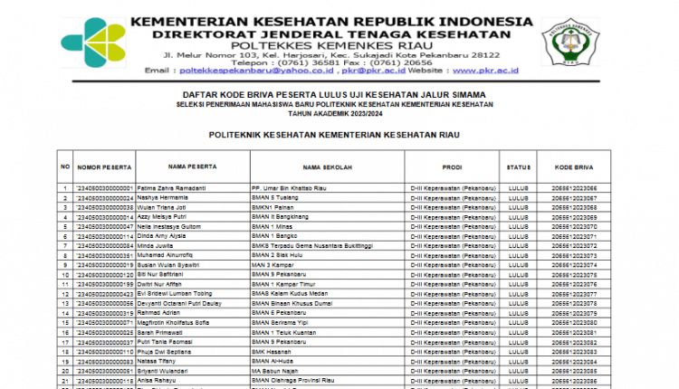 BeritaBerita DAFTAR KODE BRIVA PESERTA LULUS UJI KESEHATAN JALUR SIMAMA Last updated 15 Jun 2023 [better-wp-embedder width=”100%” height=”400px” download=”all” download-text=”” attachment_id=”5209″ /] Share FacebookTwitterWhatsAppLinkedinPrint