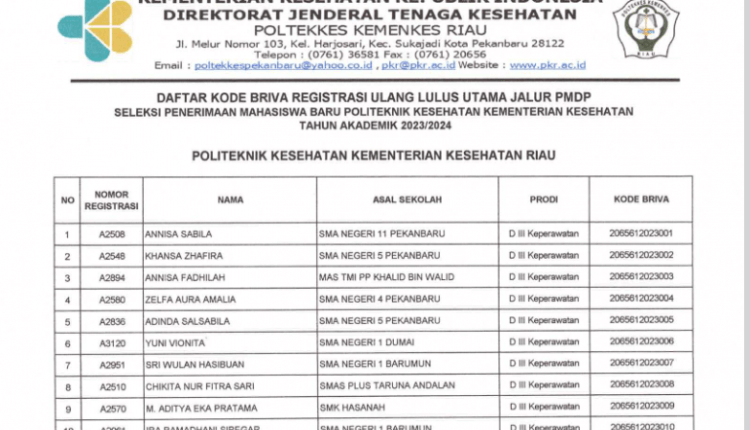 DAFTAR KODE BRIVA REGISTRASI ULANG LULUS UTAMA JALUR PMDP
