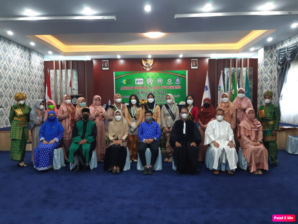 Kegiatan angkat sumpah/ janji Nutrisionis dihadiri oleh beberapa pihak, baik secara langsung maupun zoom, seperti Kepala bidang sumber daya kesehatan dan kefarmasian Provinsi Riau, ketua DPD persagi Riau, Kepala dinas kota Pekanbaru, Wakil direktur III Poltekkes Kemenkes Riau, Wakil Direktur di lingkungan Poltekkes Kemenkes Riau, Ketua Jurusan, Ka Prodi, Kasubag adak, Kasubag adum, Ka unit di lingkungan Poltekkes Kemenkes Riau, rohaniawan Islam, Kristen Katolik dan Protestan, perwakilan Kepala Instalasi Gizi RSUD Arifin Ahmad Pekanbaru, para ahli gizi (CI) Puskesmas se kota Pekanbaru, dosen jurusan gizi, panita penyelengara acara dan beberapa pihak terkait lainnya. Kegiatan yang berlansung secara langsung di aula Poltekkes Kemenkes Riau tentunya mematuhi protokol kesehatan.