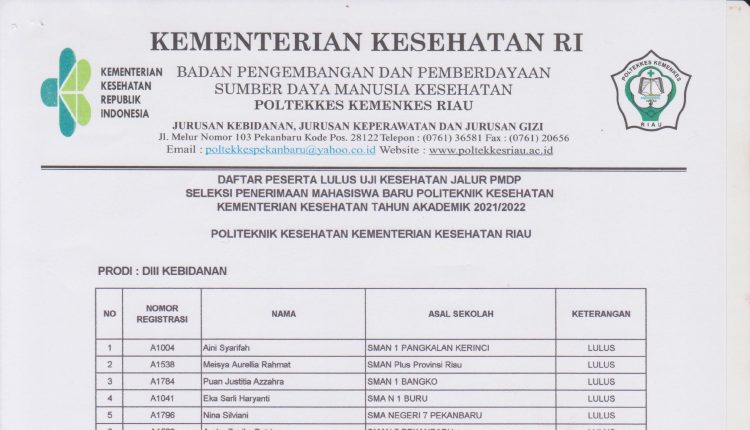BeritaBerita Pengumuman Lulus Tes Kesehatan Jalur PMDP Prodi Kebidanan On 4 Mei 2021 Unduh File Share FacebookTwitterWhatsAppLinkedinPrint