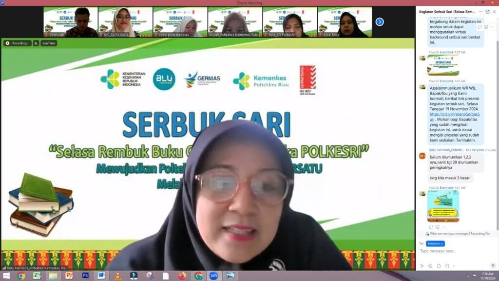 Poltekkes Kemenkes Riau Kembali mengadakan Kegiatan SERBUK SARI (Selasa Rembuk Buku Civitas Akademika Polkesri) pada hari Selasa, 19 November 2024. Ada yang menarik dari Serbuk Sari kali ini karena dibawakan langsung dengan baik oleh MC Duta Baca dari Mahasiswa, Amallya Kartika. Narasumber rembuk buku berasal dari Pegawai Bagian Keuangan, Ibu Lismawarni Simamora, SE dengan buku berjudul Organisasi Motivasi : Dasar Peningkatan Produktivitas karya Drs.H. Malayu S.P Hasibuan